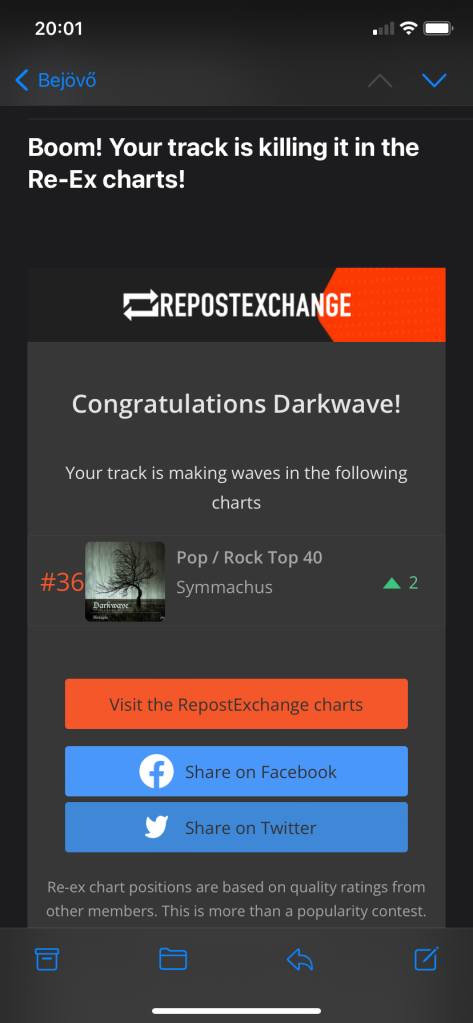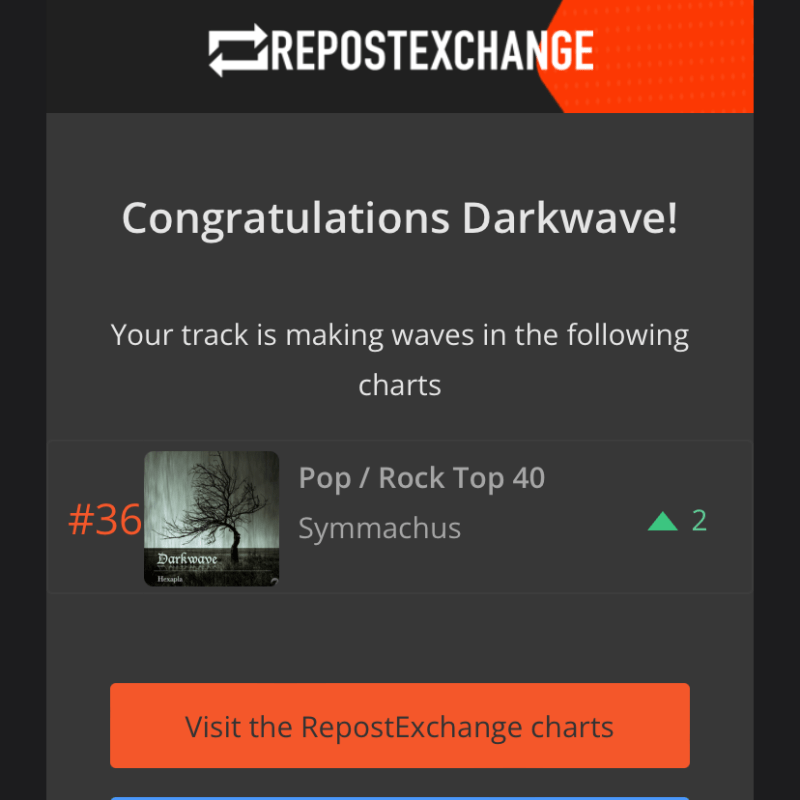 Symmachus, the fourth track of Hexapla today appeared on one of RepostExchange’s charts, Pop/Rock Top40. It’s already on the 36th place!